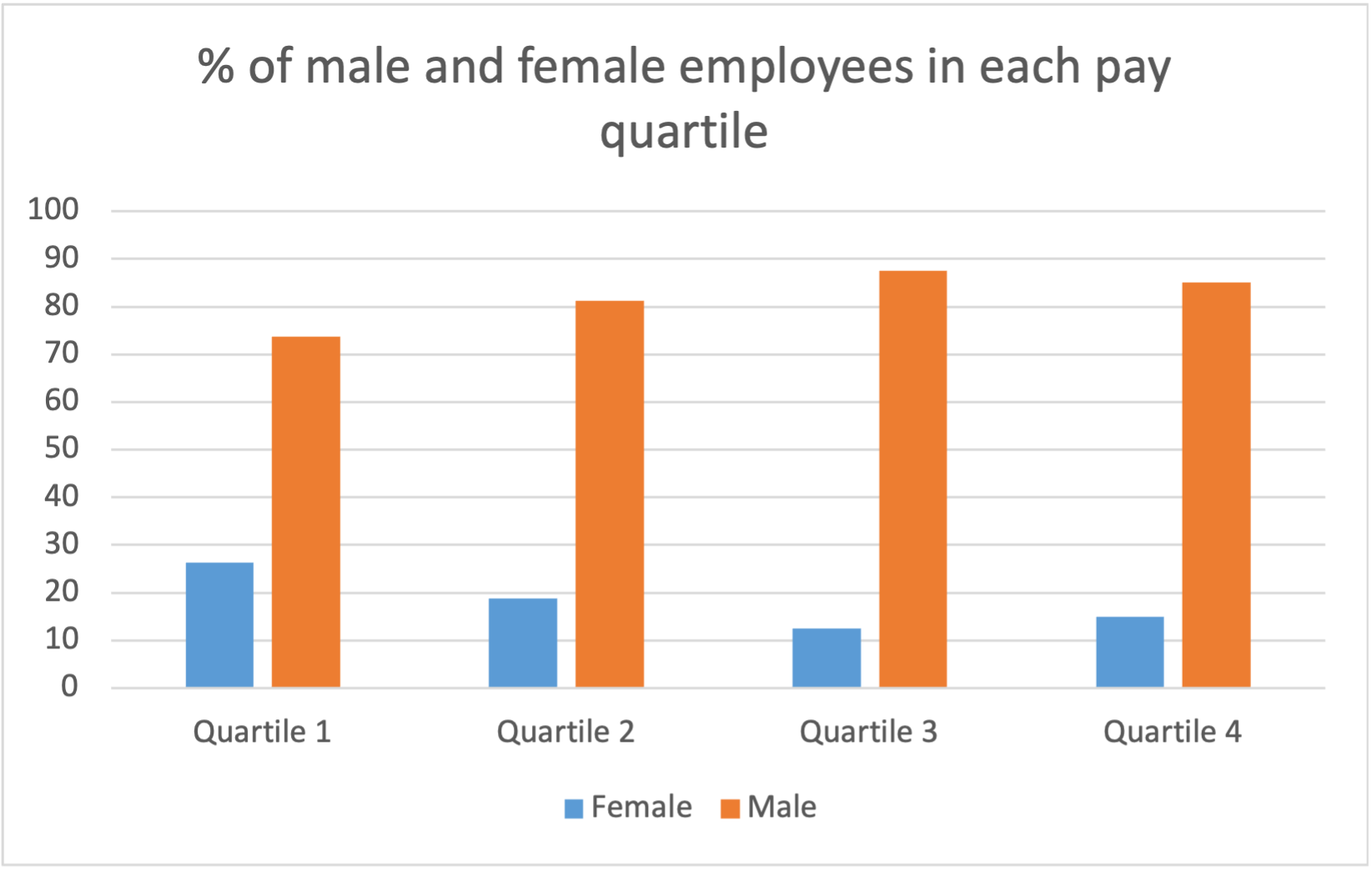 This includes all full-pay relevant employees who have had no leave in the relevant pay period and shows the percentage of male and female employees in each quartile.